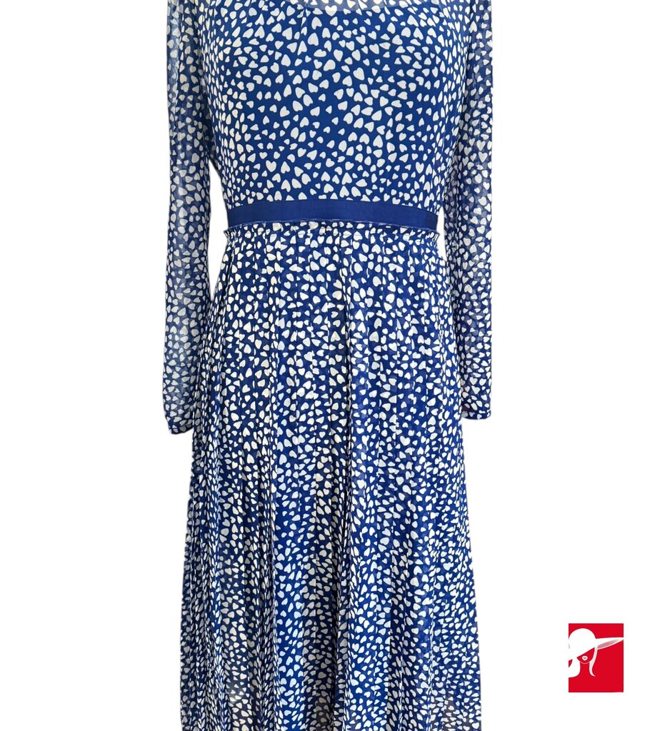 LK Bennett Avery heart print midi dress. Pleated skirt, high neck. Coms with blue slip, which can be worn with other dresses! Excellent pre-owned condition.