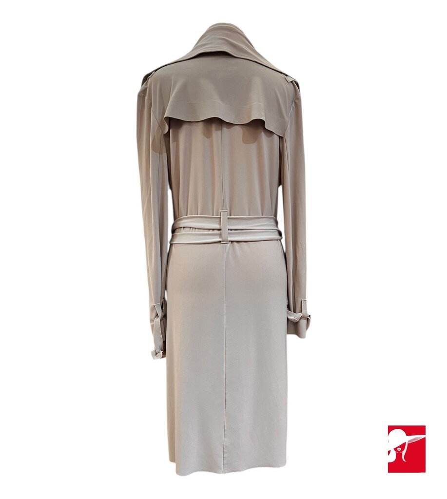 Norma Kamali duster jacket w/belt. So chic! Easy and oh so sophisticated, this topper is lightweight and statement making. Spread collar, belt and belt loop at back, Epaulet tabs at shoulder and cuffs. Polyester. Very good pre-owned condition.
