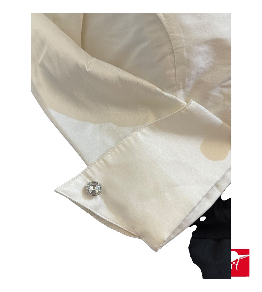 Teri Jon tuxedo style a-line dress NWT. The perfect special occasion dress. Gives the effect of a white blouse worn with a black skirt. Spread collar, concealed button front. 3/4 sleeves, rhinestone button cuffs. Bow accent at waist. Partially lined. Side slip pockets. A-line silhouette. Retails $460. New with tags pre-owned.