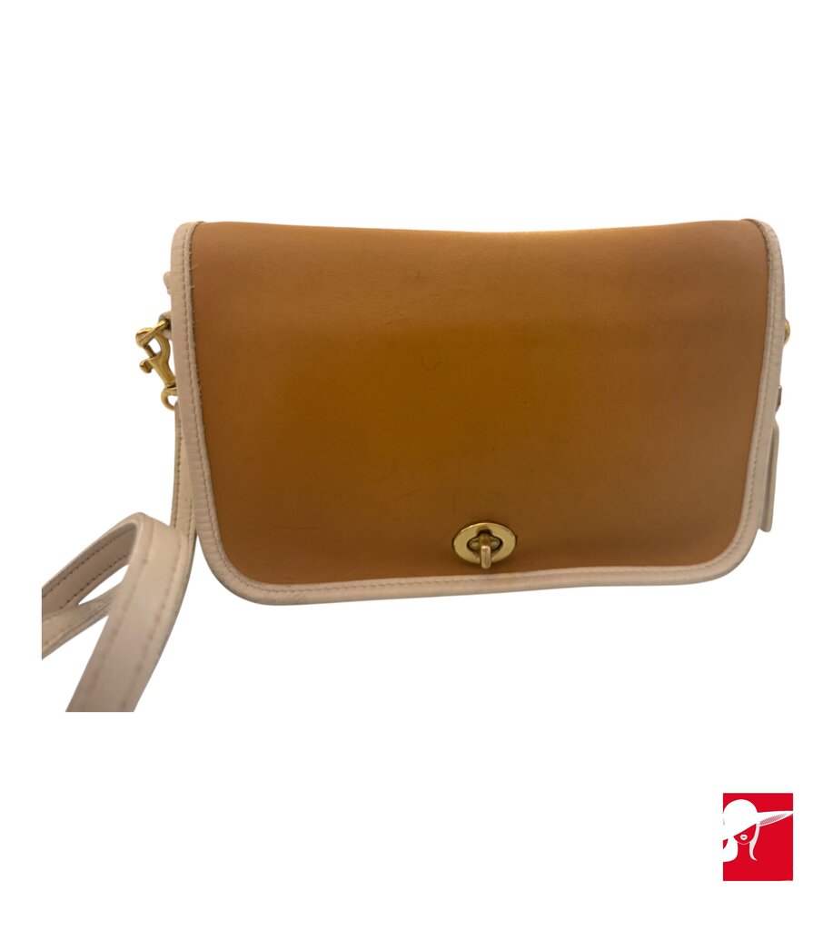 Coach vintage Spectator flap bag, Cute crossbody that can convert to a clutch. Brass turnlock. Exterior slip pocket.two Interior slip pocket, Pre-owned; exterior has some wear on cream colored trim, interior free of ink marks or stains. A true gem!