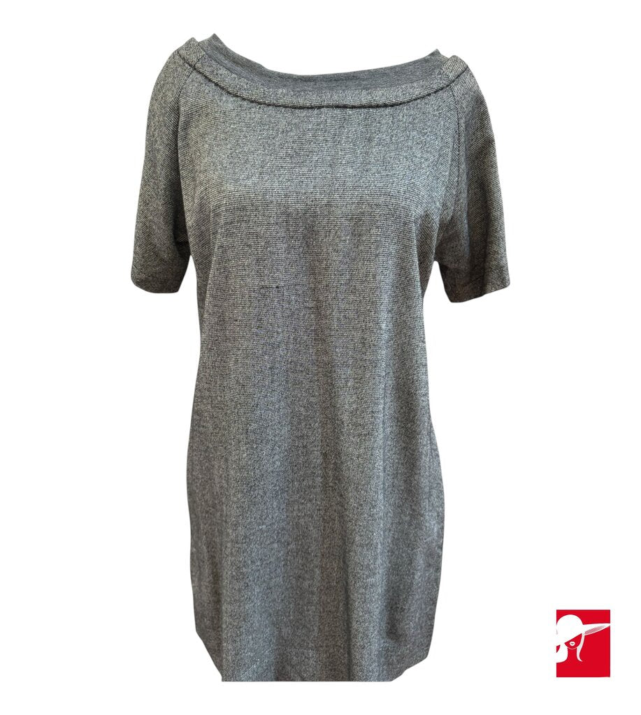 Sandro sparkle mini dress. This dress is timeless and chic - also so easy! Shift dress silhouette, pocket. A wider neck is lined in an easy tee fabric. Bust darts. Three large resin buttons decorate the back neck of the dress. 62% viscose 25% polyester 12% linen 1% metallic. Very good pre-owned condition.