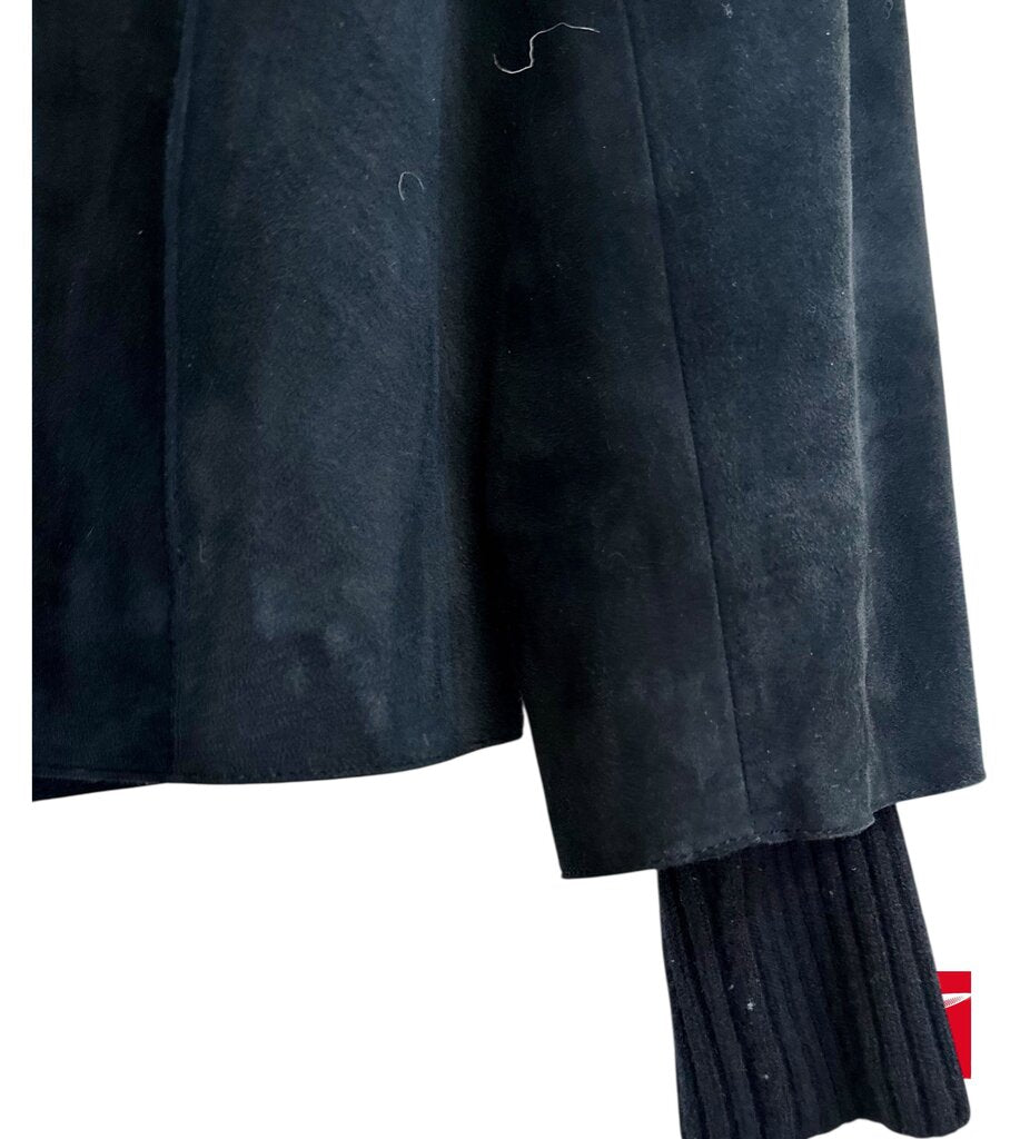 Akris suede jacket w/removable collar/cuffs. So chic! This jacket from Akris is fully lined and front zip. Glorious soft suede. Wool collar and cuffs can be removed for a Spring/more simple look. Excellent pre-owned condition.