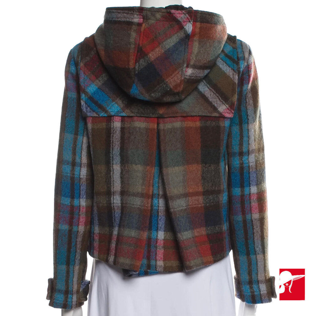 Veronica Beard Ianna plaid toggle coat. The coolest retro short coat! 100% virgin wool. Front zipper closure with toggle fastening. Attached hood. Side slant pockets. Belted cuffs. 100% wool, lining 100% Polyester. Dry Clean, Made In USA>