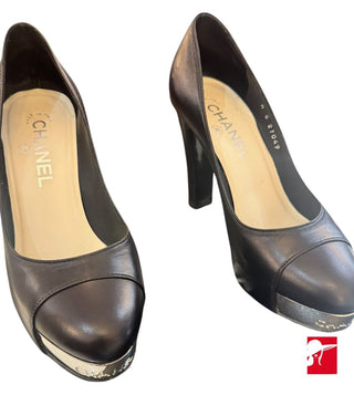 Chanel leather silver toe plate platform pumps sie 36.5/6
