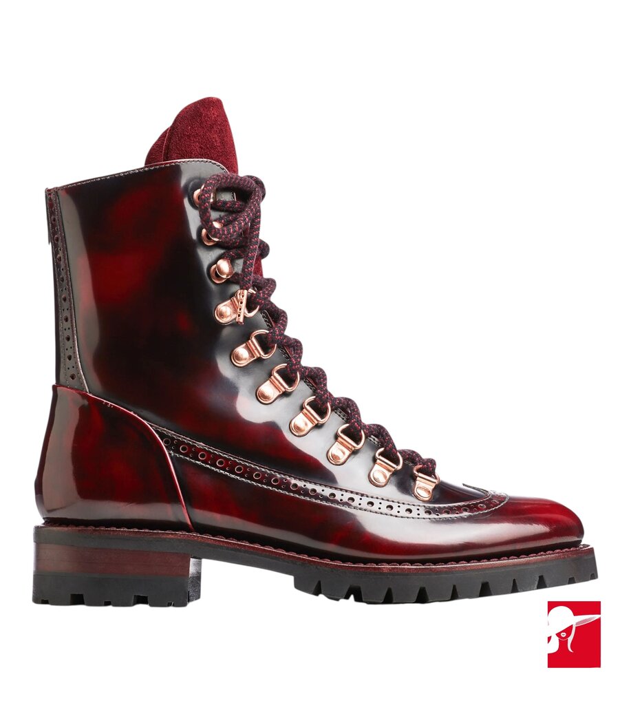 Get ready for compliments. Lots of compliments. Merging hand-polished Bordeaux leather, soft suede, and copper hardware in masterful mix of materials, the Bernard boot ups the ante with brogue detailing and high-contrast laces. The perfect accompaniment to all your autumn ensembles, this wingtip wonder will ensure you stride confidently into fall. NEW in box, retails $750