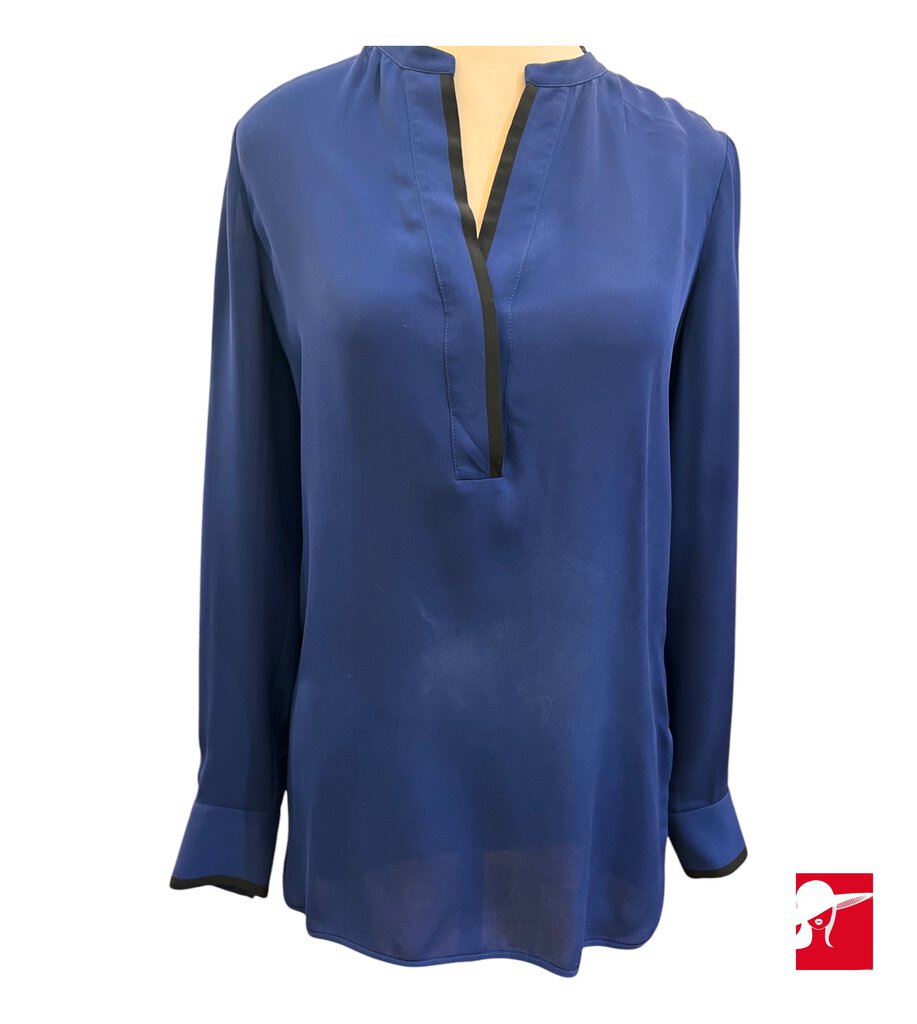 Vince silk tunic blouse. A beautiful blouse with black trim at cuff and neck Tunic style with rounded hem. 100% silk.